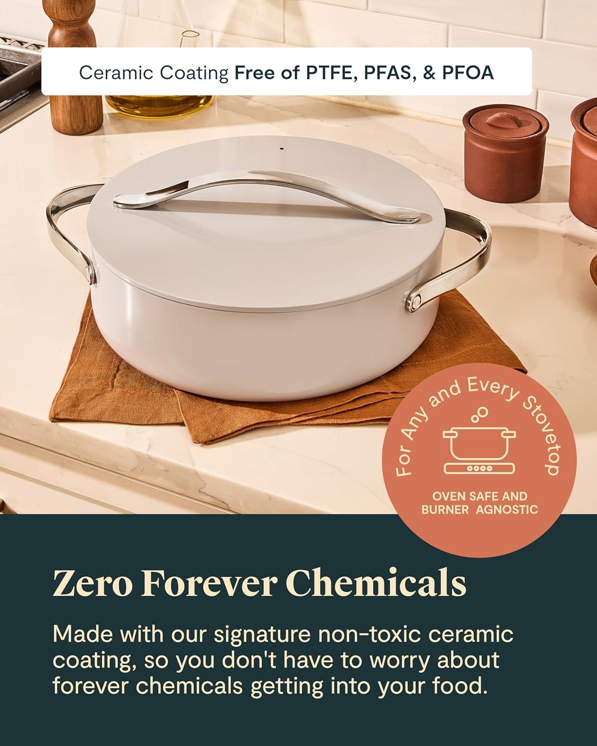 • imageCaraway Nonstick Ceramic Cookware Set 12 Piece Pots Pans Lids and Kitchen Storage  PFAS ampamp PFOA Free  Oven Safe Pan Set ampamp Compatible with All Stovetops  CreamCream Caraway Non-stick Ceramic Cookware Set (12 Piece) Pots, Pans, Lids and Kitchen Storage - PFAS & PFOA Free - Oven Safe Pan Set & Compatible with All Stovetops - Cream(Cream) $445.00 Original price was: $445.00.$200.00Current price is: $200.00.