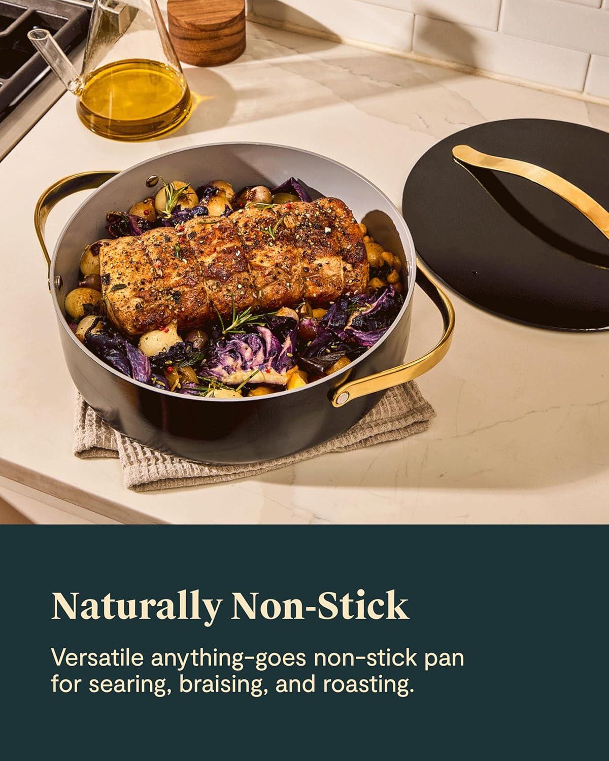 • Caraway Rondeau – 6 Qt Non-Stick Pan with Lid – Free From Forever Chemicals – Perfect for Searing, Braising, & Roasting – Sage(White)