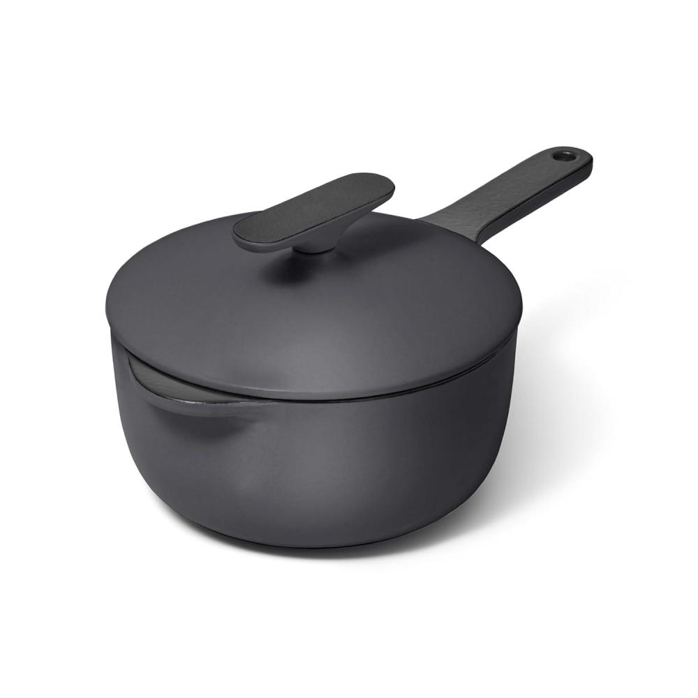 Caraway 1.8 qt Enameled Cast Iron Sauce Pan with Lid – Cast Iron Pot for Sauces, Grains & Reductions – Safe For Stovetop & Oven – Durable, Non-Toxic & Easy to Clean – Midnight Blue(Charcoal)