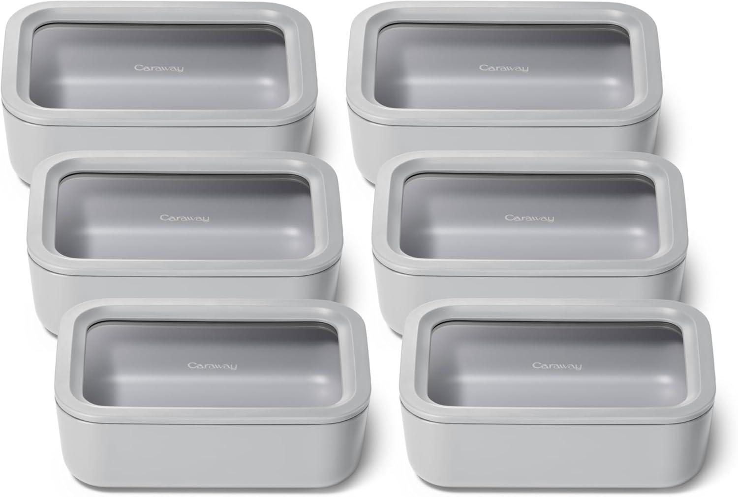 Caraway 6pc Glass Food Storage Set – 6.6 Cup Food Containers (6) – Ceramic Coated – Non Toxic, Non Stick with Lids – Microwave Safe – Perracotta(Gray)