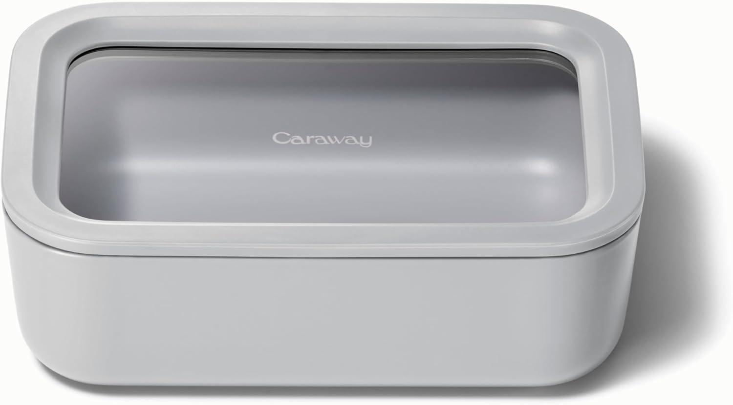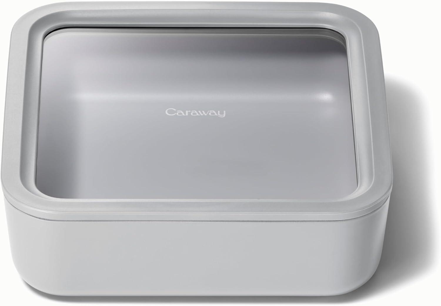 Caraway Glass Food Storage – 10 Cup Glass Container – Ceramic Coated Food Container – Non Stick Lunch Box with Lids – Dishwasher, Oven, & Microwave Safe – Square Shape – Mist(Gray)