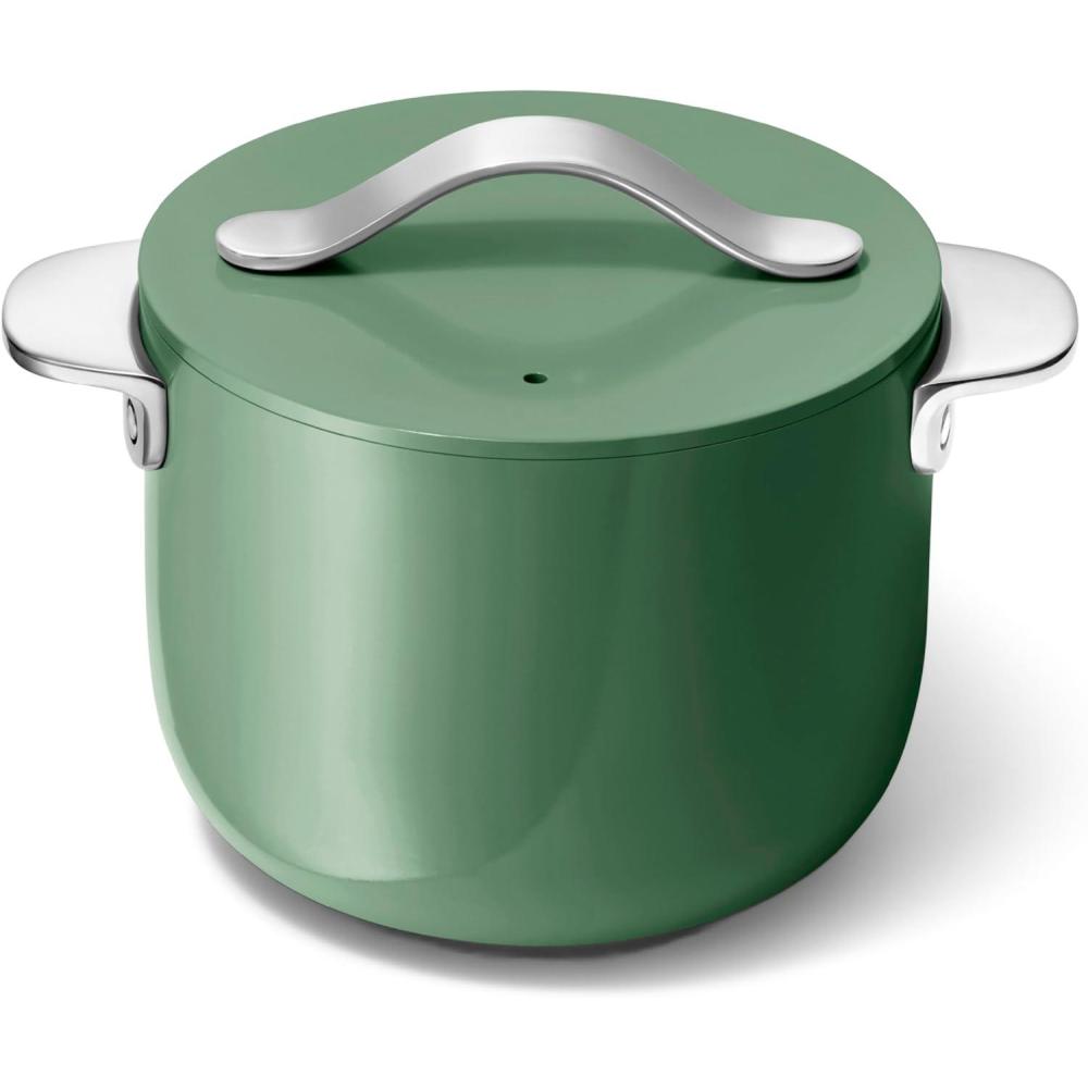 Caraway Petite Cooker – 2 Qt Ceramic Coated Pot – Free From Forever Chemicals – Perfect for Rice, Grains, or Sauces – Cream(Sage)