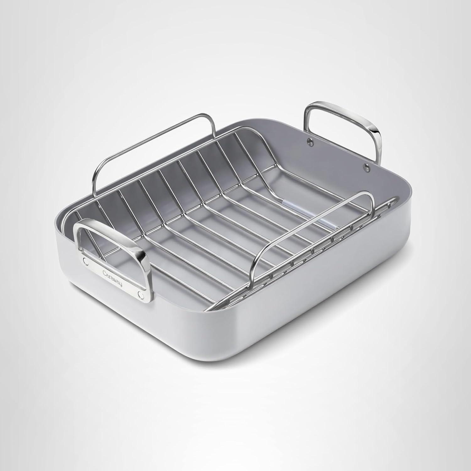 Caraway Roasting Pan – 16×13” Roasting Pan with Rack – Non-Stick Ceramic Coated – Non Toxic, PTFE & PFOA Free – Oven Safe & Compatible with All Stovetops – Sage(Gray)