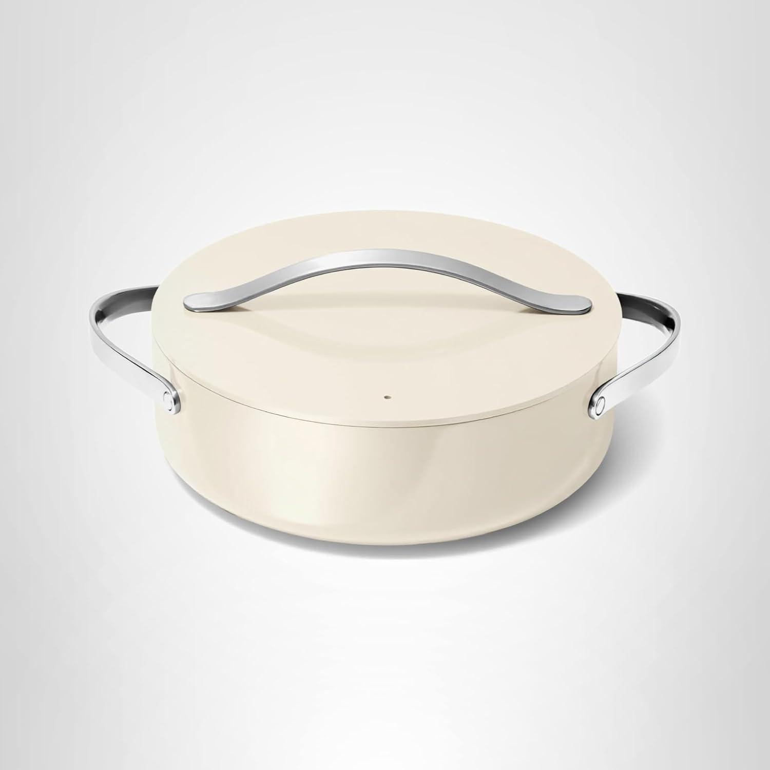 Caraway Rondeau – 6 Qt Non-Stick Pan with Lid – Free From Forever Chemicals – Perfect for Searing, Braising, & Roasting – Sage(Cream)