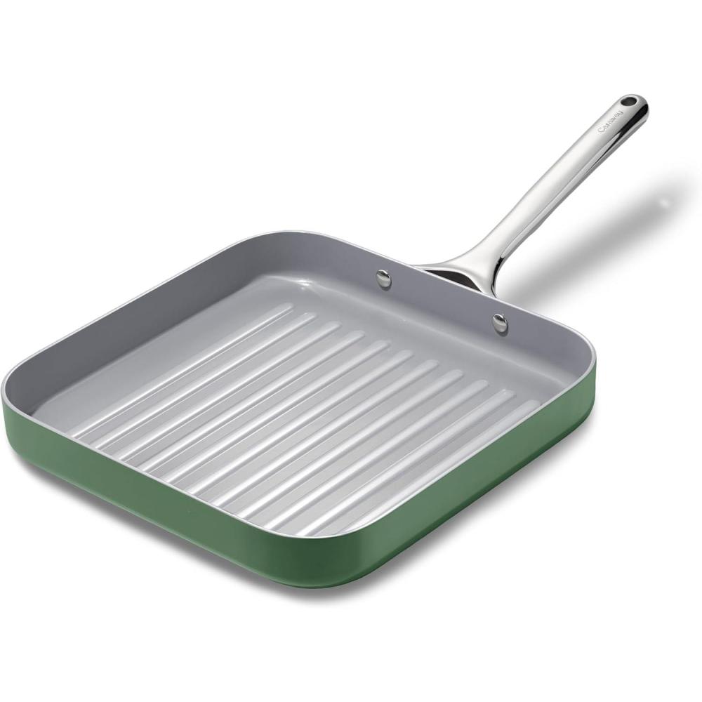 Caraway Square Grill Pan – 11” Grill Pan – Non-Stick Ceramic Coated – Non Toxic, PTFE & PFOA Free – Oven Safe & Compatible with All Stovetops – Cream(Sage)